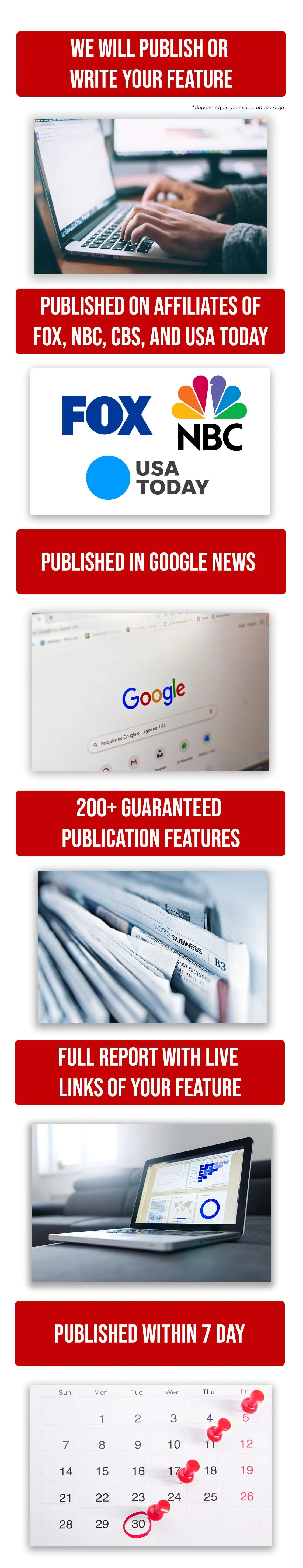 Your feature can range from many topics but you want to make sure it is a newsworthy topic. Such as a new product or service you just launched or a general announcement of your business where you can talk about your mission and benefits.