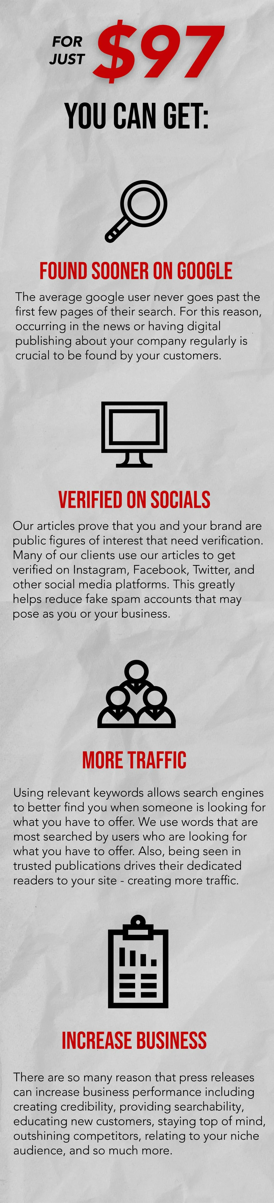 To help you get verified, we can help feature your brand in top news outlets with live links so you can give social media sites the proof they need.